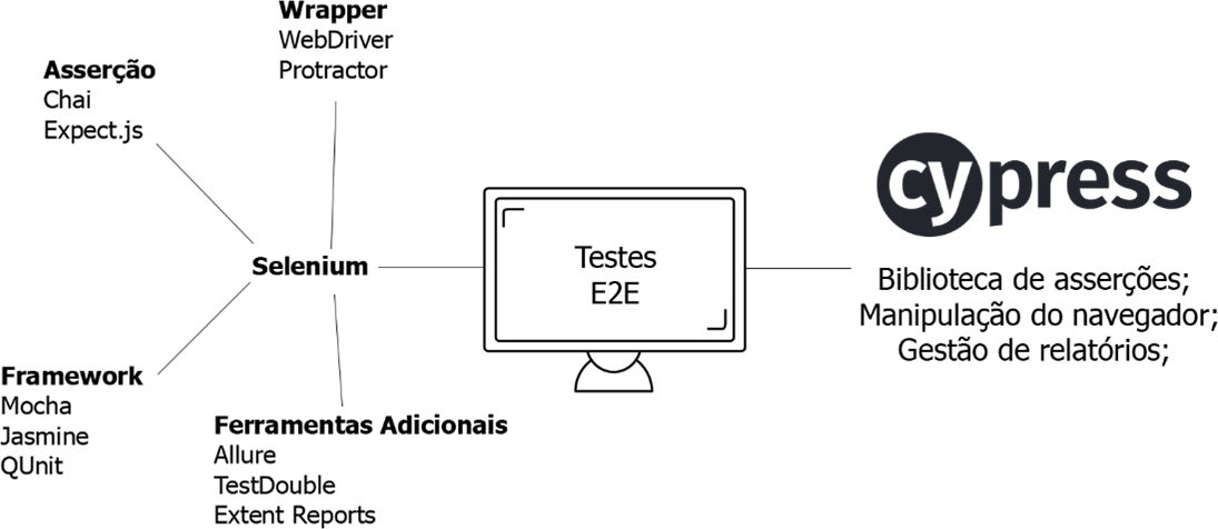 Não é mais novidade que o processo de automação de testes de software, se bem planejado, desenvolvido e executado, permite a redução dos esforços empregados em testes manuais e auxilia na garantia da qualidade dos sistemas e aplicativos onde são implantados. Todavia, testes automatizados podem consumir um tempo considerável para serem desenvolvidos, o que acaba inviabilizando a construção destes em ambientes ágeis, Cypress e Selenium são ferramentas de automação de teste usadas para testes funcionais de aplicativos da Web, automatizando as ações do navegador. O Selenium tem sido uma ferramenta amplamente utilizada há anos, enquanto o Cypress é uma ferramenta introduzida recentemente na comunidade de teste.